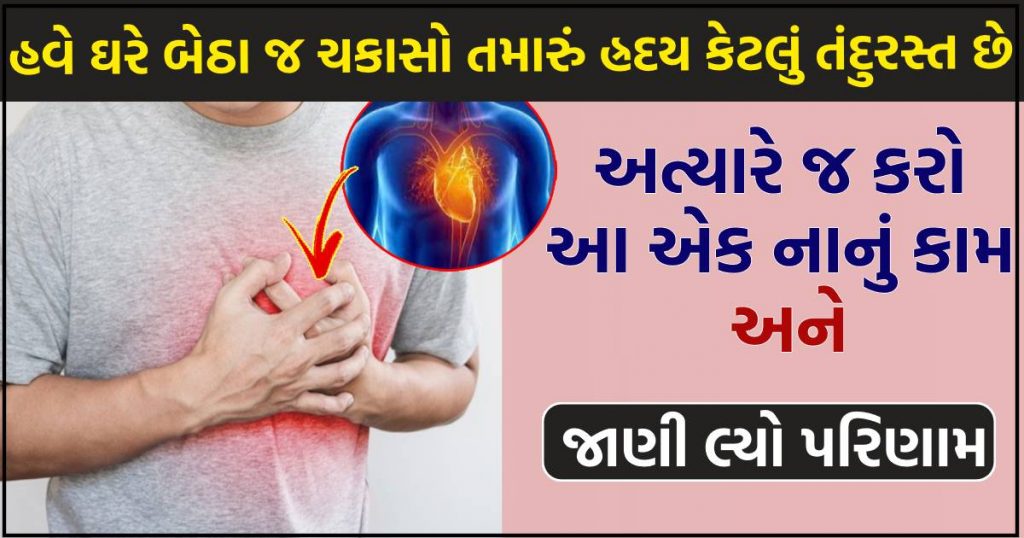 દેશમાં દિવસેને દિવસે રોગચાળો વધતો જાય છે. દરરોજના કેસો અને મૃત્યુ થવાનું પ્રમાણ પણ વધી રહ્યું છે. આ સમયે હ્રદય રોગ વાળા લોકો તરત જ સંક્રમિત થાય છે. આજે અમે તમને એવો નુસકો જણાવવા જઈ રહ્યા છીએ તેનાથી તમે ઘરે બેઠા જ જાણી શકશો કે તમારું હ્રદય કેવું સ્વસ્થ અને તંદુરસ્ત છે તેના વિશે. તો ચાલો આપણે જાણીએ હ્રદય ની ચકાસણી કેવી રીતે કરવી.