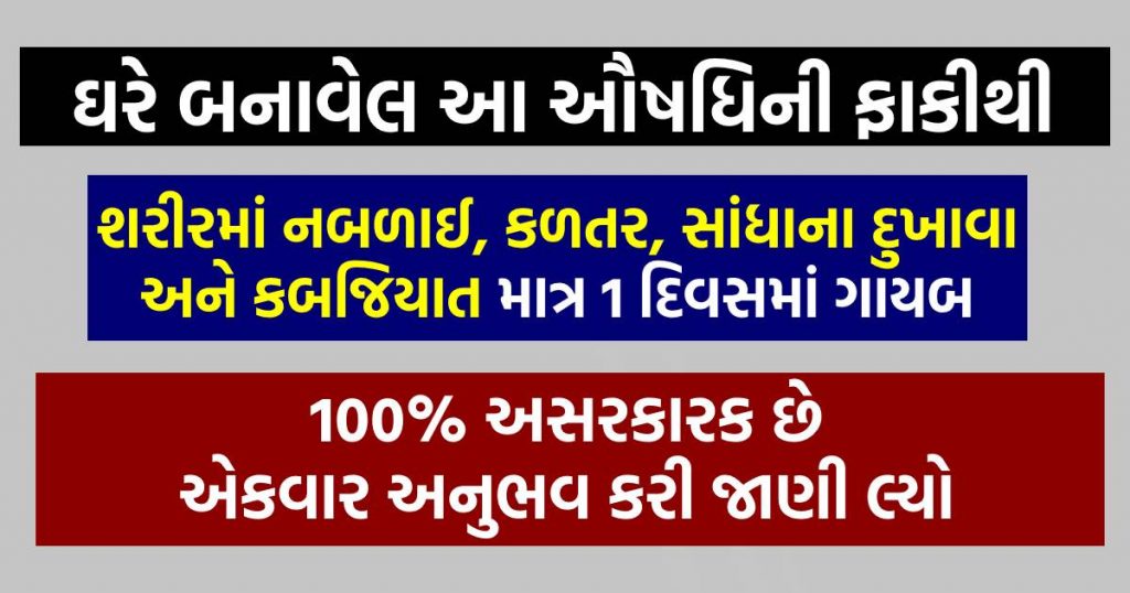 ઘરે બનાવેલ આ ઔષધિની ફાકીથી શરીરમાં નબળાઈ, કળતર, સાંધાના દુખાવા અને કબજિયાત માત્ર 1 દિવસમાં ગાયબ, 100% અસરકારક છે એકવાર અનુભવ કરી જાણી લ્યો